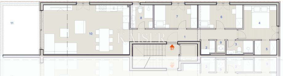 Stan, oznake S7, nalazi se na drugom katu zapadne zgrade. Ukupna neto korisna površina stana iznosi 89,28 m². Pažljivo je projektiran kako bi se naglasili otvoreni, svijetli prostori i besprijekorna povezanost s prirodnim okruženjem.