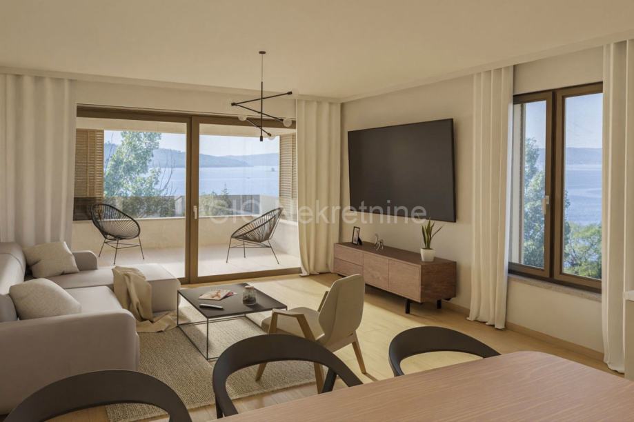 Iz dnevnog dijela omogućen je izlaz na natkrivenu terasu, savršenu za opuštanje, druženja i uživanje u morskom ambijentu tijekom cijele godine.
