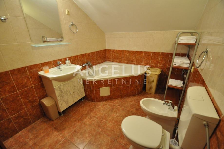 Na donjoj etaži se nalazi dnevni boravak sa kuhinjom i blagovaonicom, mali toalet i lođa. Unutarnjim stepenicama se de na gornju etažu (galeriju) na kojoj se nalaze 3 sobe i kupaonica.