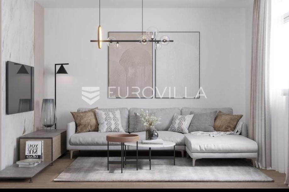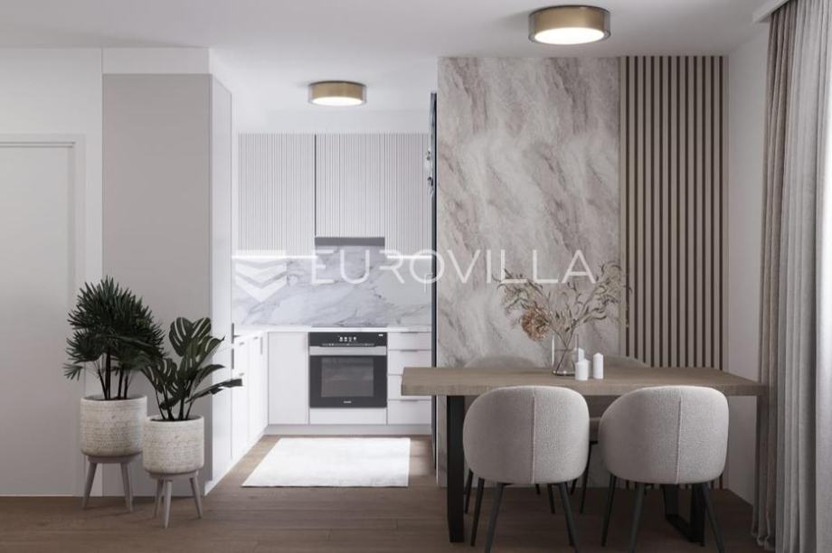 Komforan dvosoban stan u na drugom katu ukupne površine 50,5 m2 s pripadajućom krovnom terasom 59 m2 te parkirnim mjestom.Sastoji se od: dvije spavaće sobe kuhinje s blagovaonicom i dnevnog boravka otvorenog tipa, kupaonice, hodnika, logge na jugu povezane s dnevnim boravkom te krovnom terasom...