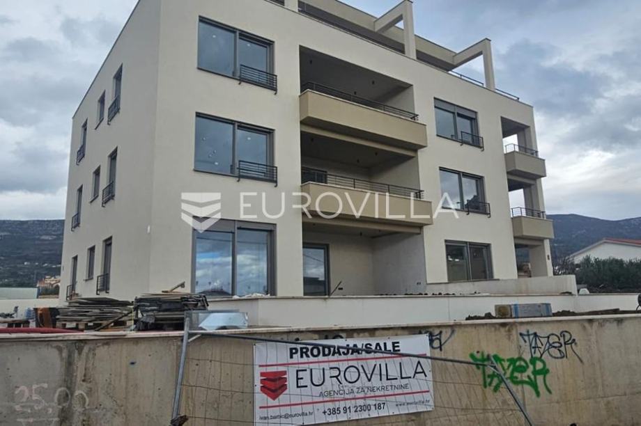 Kaštela, NOVOGRADNJA, komforan, luksuzan dvosoban stan, smješten u prizemlju urbane zgrade s liftom.Sastoji se od kuhinje s blagovaonicom te dnevnog boravka otvorenog tipa (32,67 m2), hodnika, dvije komforne spavaće sobe, predsoblja, dvije kupaonice, te velike, djelomično natkrivene terase...
