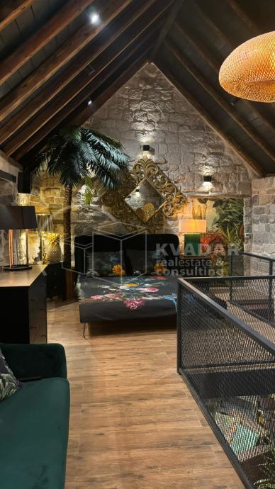 In the historical center of the Kastel Stari, only 50m from the beach, in the immediate vicinity of the new marina, this unique, 2-story apartment has been built, located inside a newly renovated stone house, at the end of a row of typical Kastelan small street.