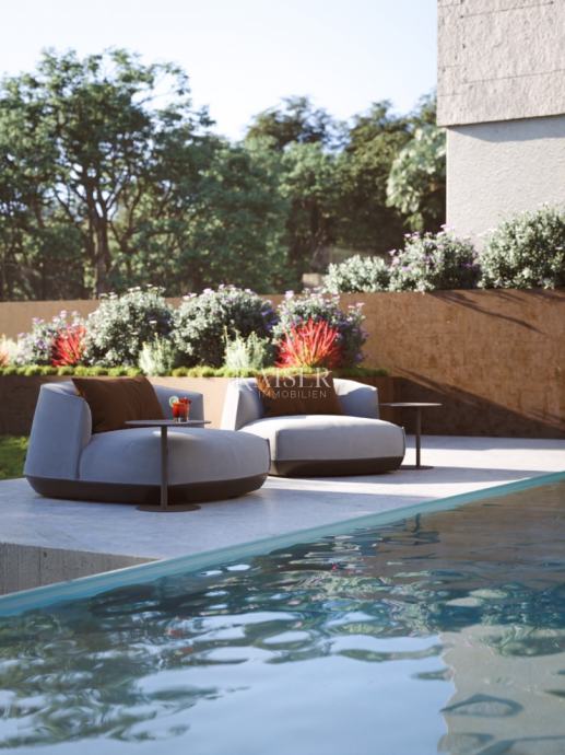 Na ovom građevinskom zemljištu planirana je izgradnja luksuzne moderne vile sa bezenom, stoga ovaj građevinski teren dolazi s gotovim projektom.