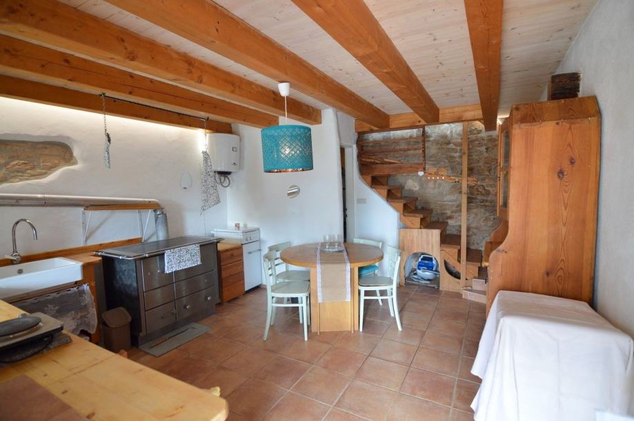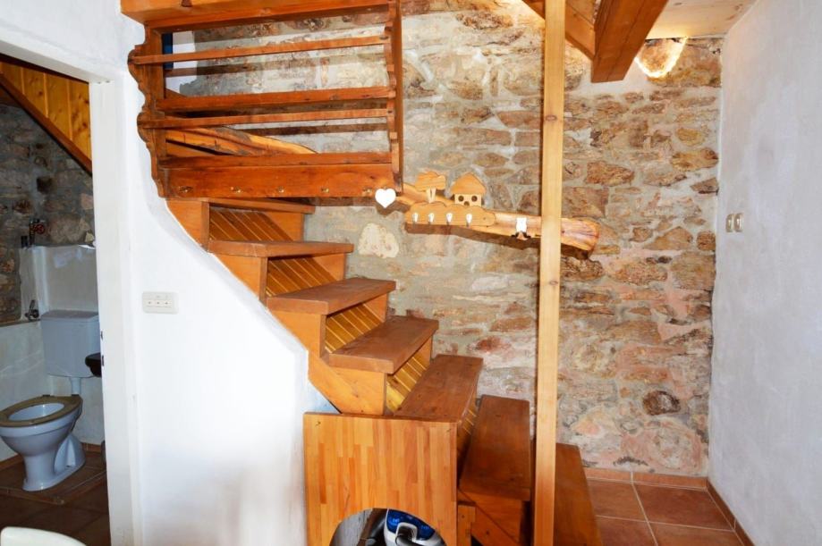 Prizemlje kuće sastoji se od ulazog trijema, kuhinje sa blagovaonom i kupatilom , stepenište vodi do kata gdje je smješten dnevni boravak sa terasom , a na drugom katu je spavaća soba.