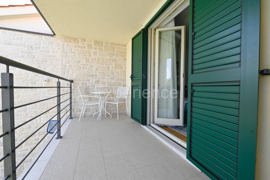 Prostire na dvije pomno dizajnirane etaže. U prizemlju nalazi se dnevni boravak, kuhinja i blagovaonica sa izlazom na natkrivenu terasu, spavaća soba sa vlastitom kupaonicom i toalet. Dok su na katu smještene dvije spavaće sobe svaka sa vlastitom kupaonicom i izlazom na natkrivenu terasu.
