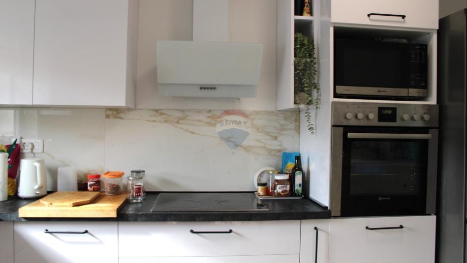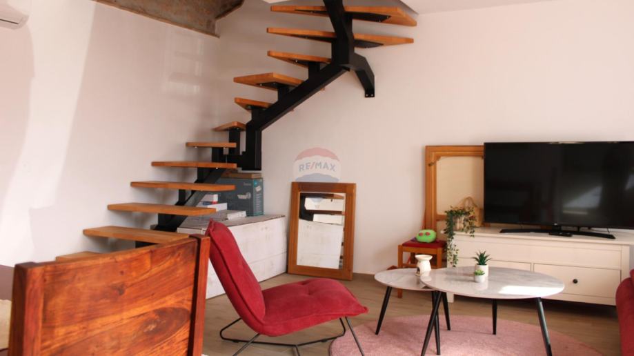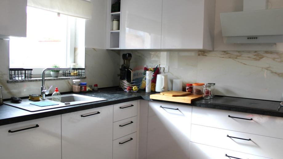U prizemlju se nalazi kuhinja s blagovaonicom, te prostrani dnevni boravak koji pruža izlaz na vanjski prostor. Ova etaža također sadrži kupaonicu i spremište, čineći je funkcionalnom i ugodnom za svakodnevni život.
