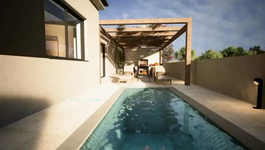 U prodaji moderna prizemnica s bazenom (ili bez), idealna za obiteljski život ili turistički najam. Smještena na mirnoj lokaciji, 5 km od Poreča, u naselju Kaštelir.