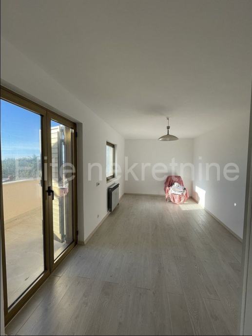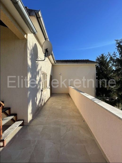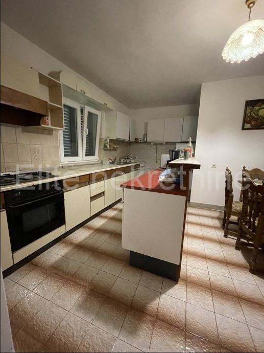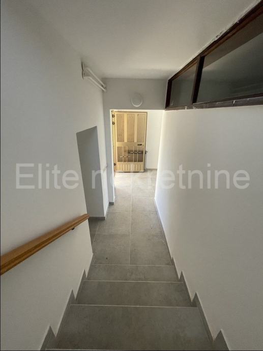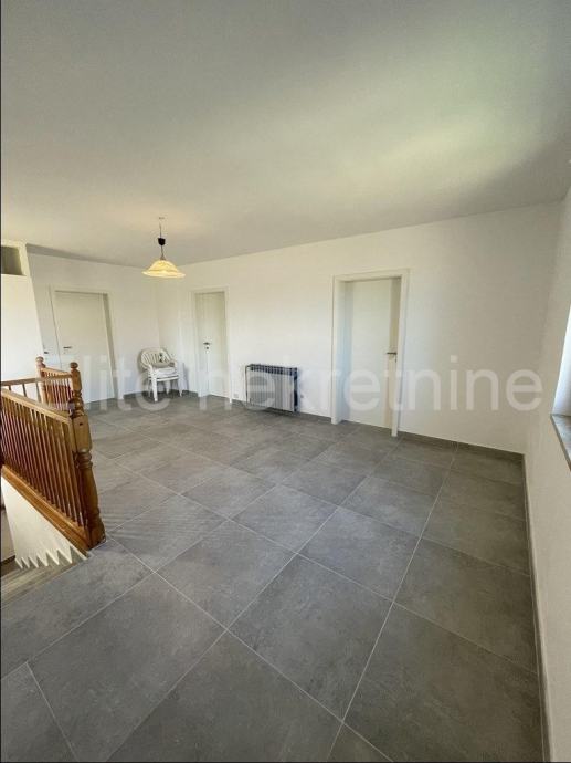 Na prvom katu se nalazi prostrano predvorje, 3 sobe i mali WC. Jedna od soba ima izlaz na prostrani balkon s kojeg se pruža pogled na krajolik i more.