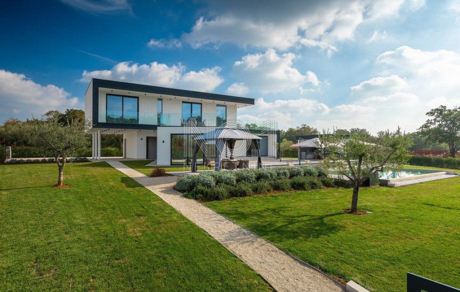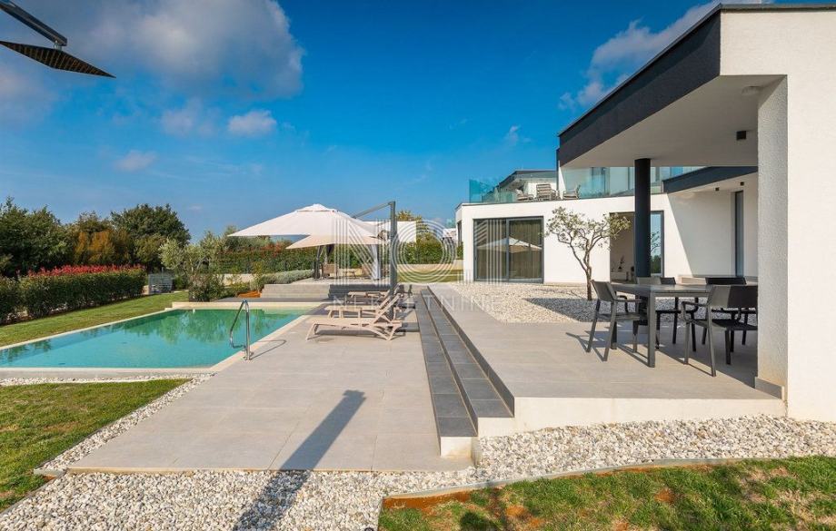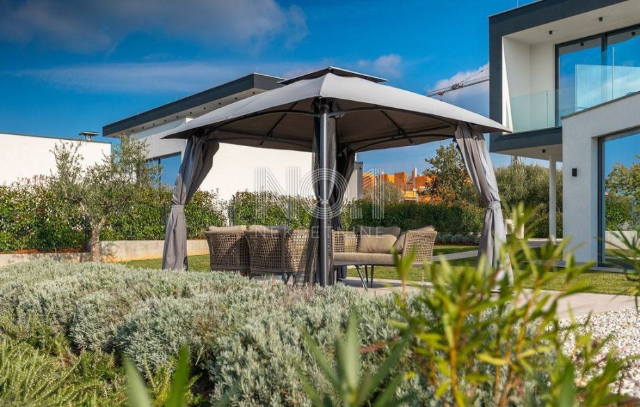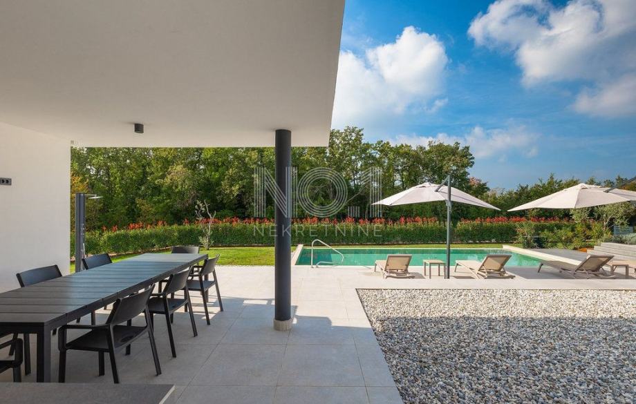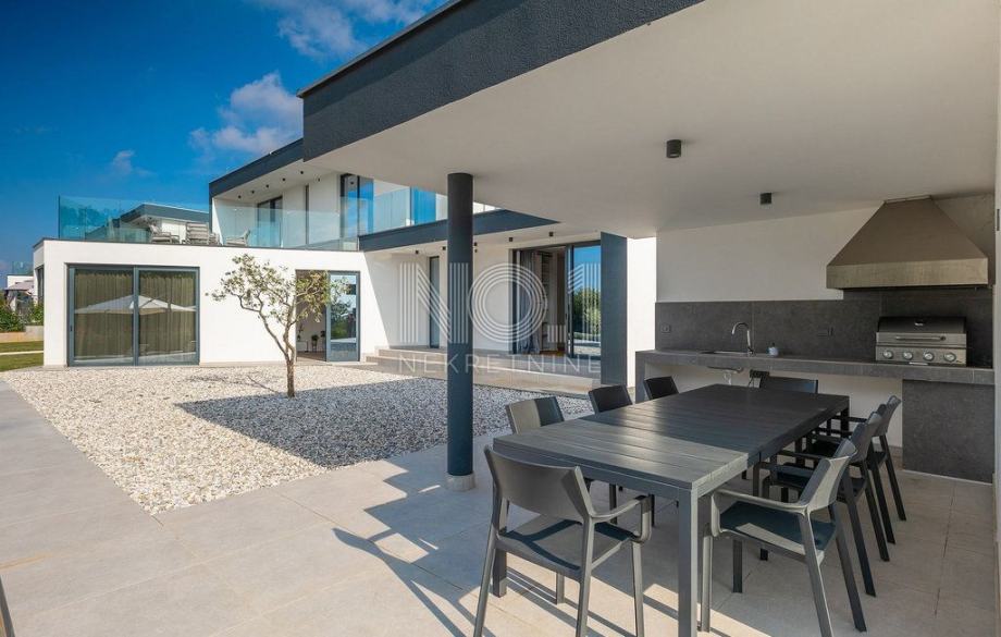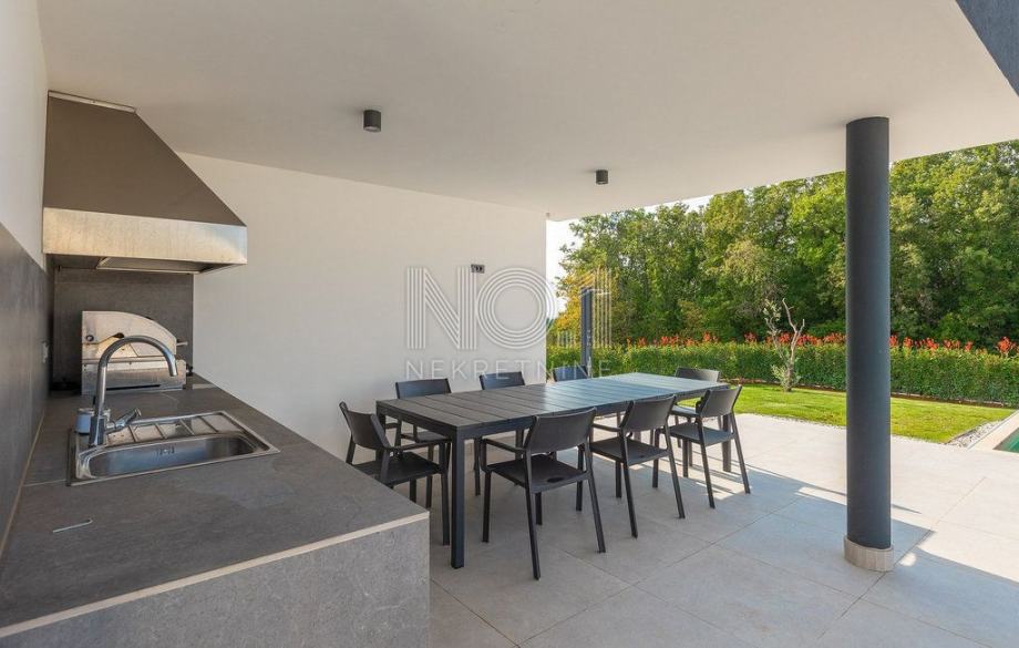 Vila se nalazi na prostranom zemljištu od 1,753 m², što osigurava privatnost i dovoljno prostora za uživanje na otvorenom. Prekrasno uređeni vrtovi, sunčalište uz bazen, kao i natkriveni prostor za vanjske objede čine ovu nekretninu savršenim mjestom za opuštanje.