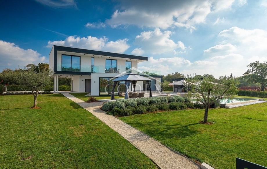 Vila se nalazi na prostranom zemljištu od 1,753 m², što osigurava privatnost i dovoljno prostora za uživanje na otvorenom. Prekrasno uređeni vrtovi, sunčalište uz bazen, kao i natkriveni prostor za vanjske objede čine ovu nekretninu savršenim mjestom za opuštanje.