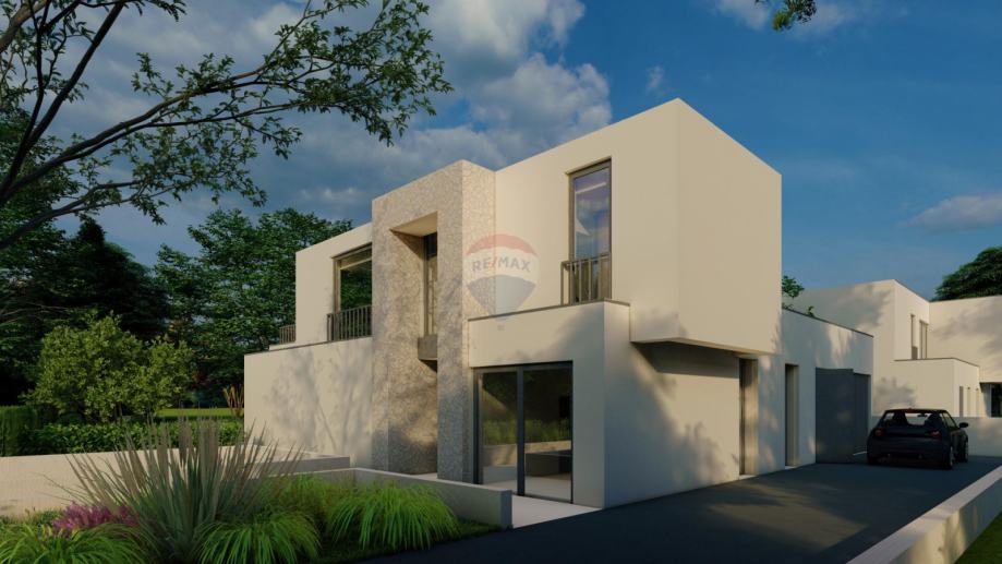 Predstavljamo novu modernu vilu koja kreće u izgradnju u zanimljivom i nadaleko poznatom istarskom mjestu Kašteliru. Lokacija je vrlo atraktivna, predivni se pogledi pružaju preko zelenih površina, pa sve do mora. Vila će se graditi na parceli od 617 m2. Projekt je vrlo detaljno osmišljen, gradnja će biti s trenutno najkvalitetnijim materijalima. vili će pripadati 2 parkirna mjesta i garaža za vozilo. Prizemlje kuće koncipirano je od ulaznog prostora, dnevnog boravka, kuhinje , blagovaonice sve u jednom open space prostoru. Zbog orijentacije prema jugo zapadu prostori će biti osvijetljeni i sunčani tijekom čitavog dana. Tu se u nastavku nalazi spavaća soba, kupaonice , toalet, terase/ natkrivene i nenatkrivene, spremište i garaža. Stepenište vodi do gornje etaže kuće gdje će se nalaziti 3 spavaće sobe svaka sa svojom kupaonicom i dvije terase. Moderna gradnja, divan projekt, odlična lokacija predstavljaju odličnu investicijsku priliku za kupnju ove zanimljive vile. Za grijanje bit će postavljeno podno grijanje na toplinsku pumpu, a spavaće sobe i dnevni boravak bit će klimatizirane s klima uređajima. Prozori i francuska vrata bit će od aluminijske konstrukcije s troslojnim staklima. Kuća će imati i pametan sustav koji uključuje upravljanje rasvjetom, podnim grijanjem, kontrolom sjenčenja.
