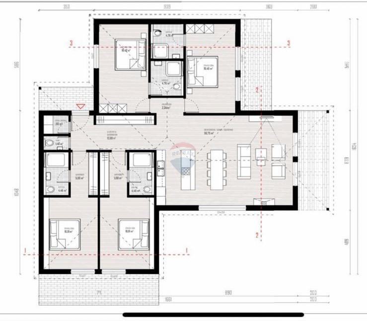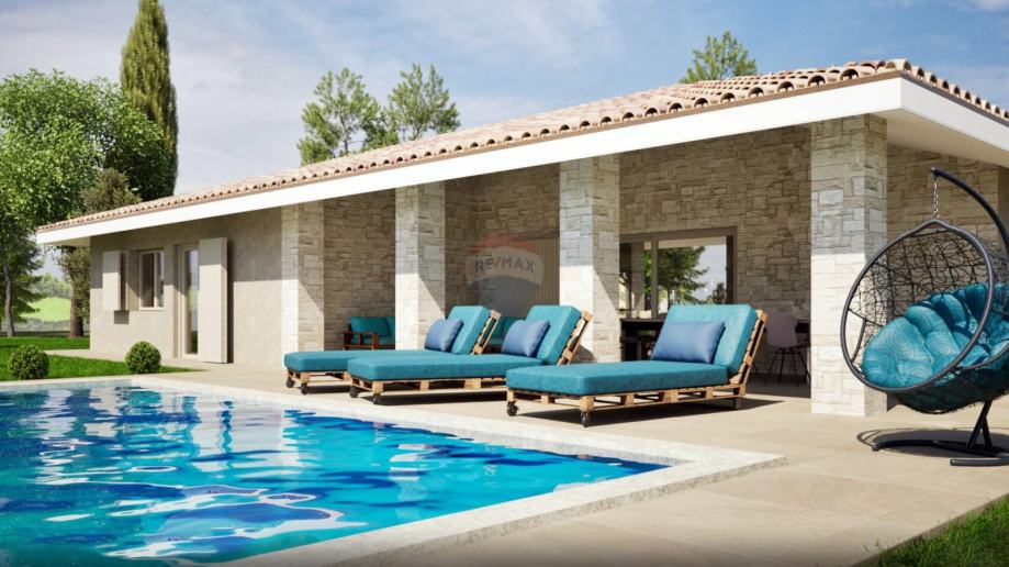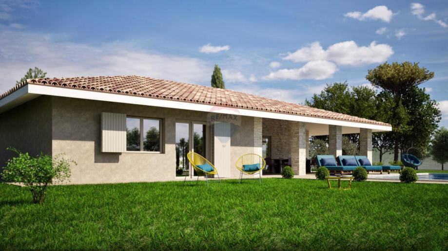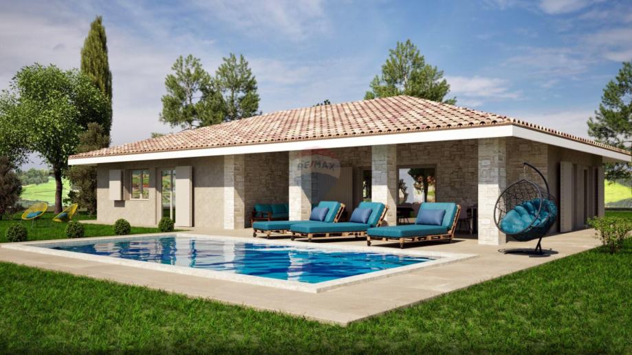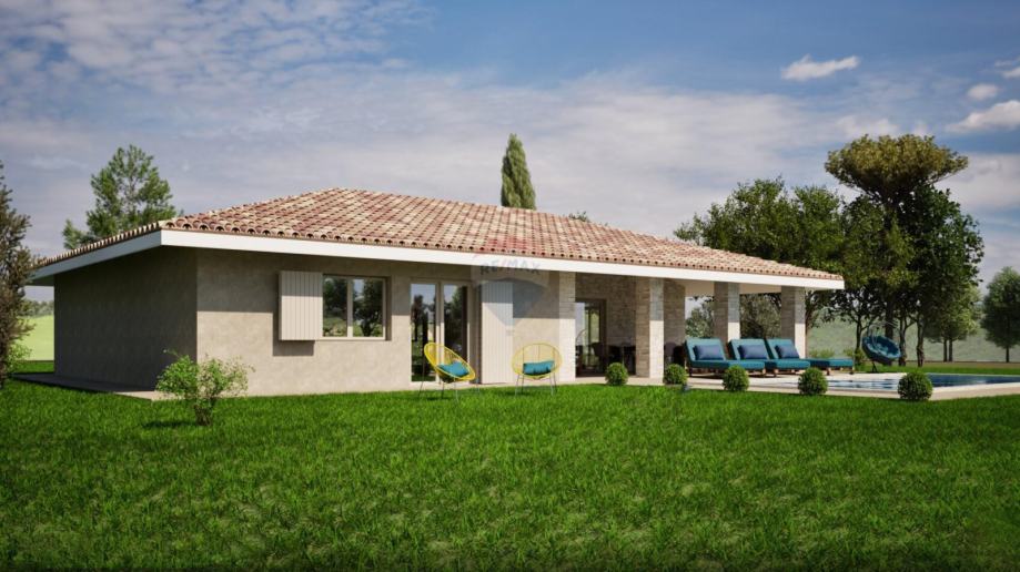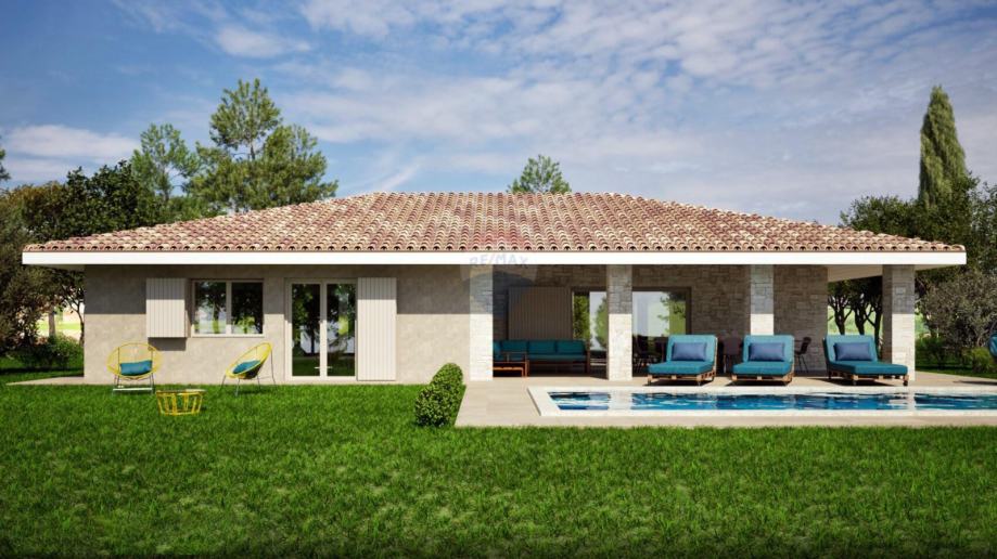 Prodaje se prizemnica s predivnim pogledom na maslinike i more. Kuća je smještena u mirnom djelu mjesta na udaljenosti od 500 m do trgovine, kafića, restorana i ostalih sadržaja potrebnih za ugodan život. Površine je 198 m2 te će se sastojati od ulaznog hodnika, četiri spavaće sobe, od kojih će svaka imati svoju kupaonu, spremišta, toaleta te prostranog open space dnevnog boravka s kuhinjom i blagovaonom. Iz dnevnog djela će se kroz velike staklene stijene prostirati pogled na sunčalište, bazen, preko maslinika sve do mora.