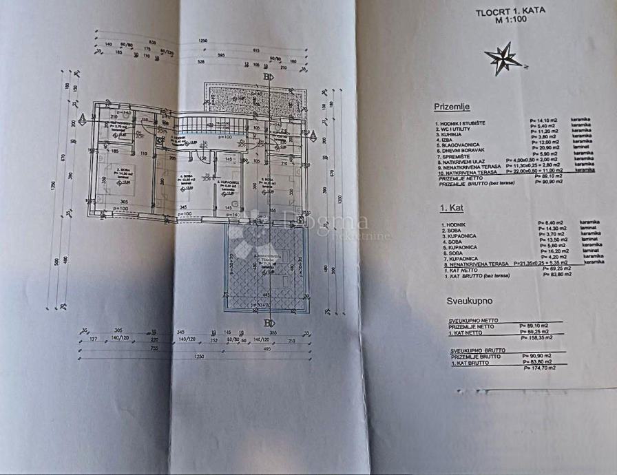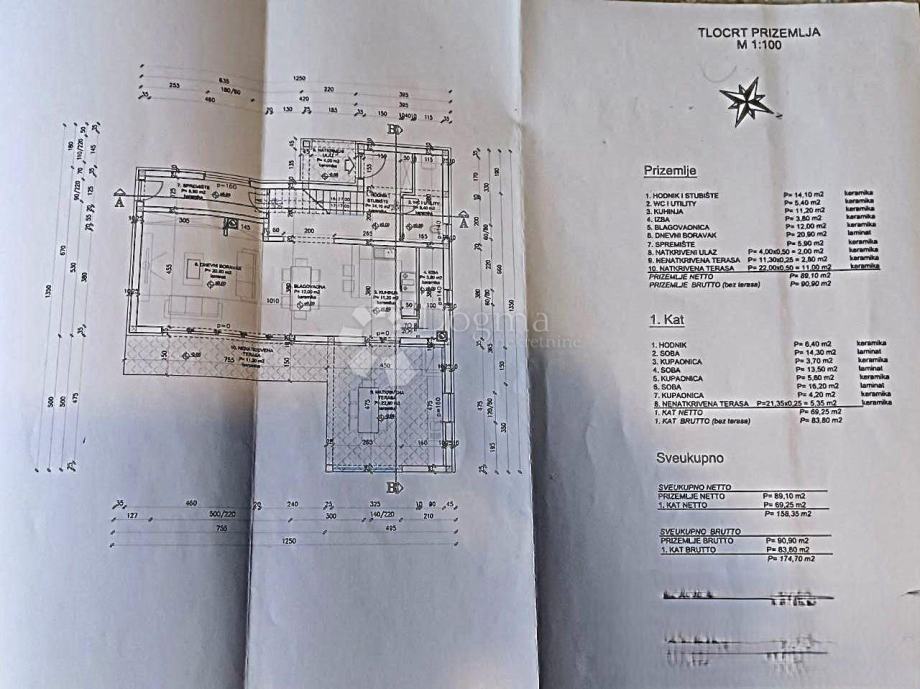 Predstavljamo Vam novu, modernu katnicu smještenu na mirnoj i sunčanoj lokaciji, idealnu za obiteljski život ili luksuzno turističko iznajmljivanje. Ukupne stambene površine 160 m², ova nekretnina nudi savršen spoj suvremenog dizajna, funkcionalnosti i privatnosti, okružena okućnicom površine 970 m² na kojoj se nalazi i privatni bazen.