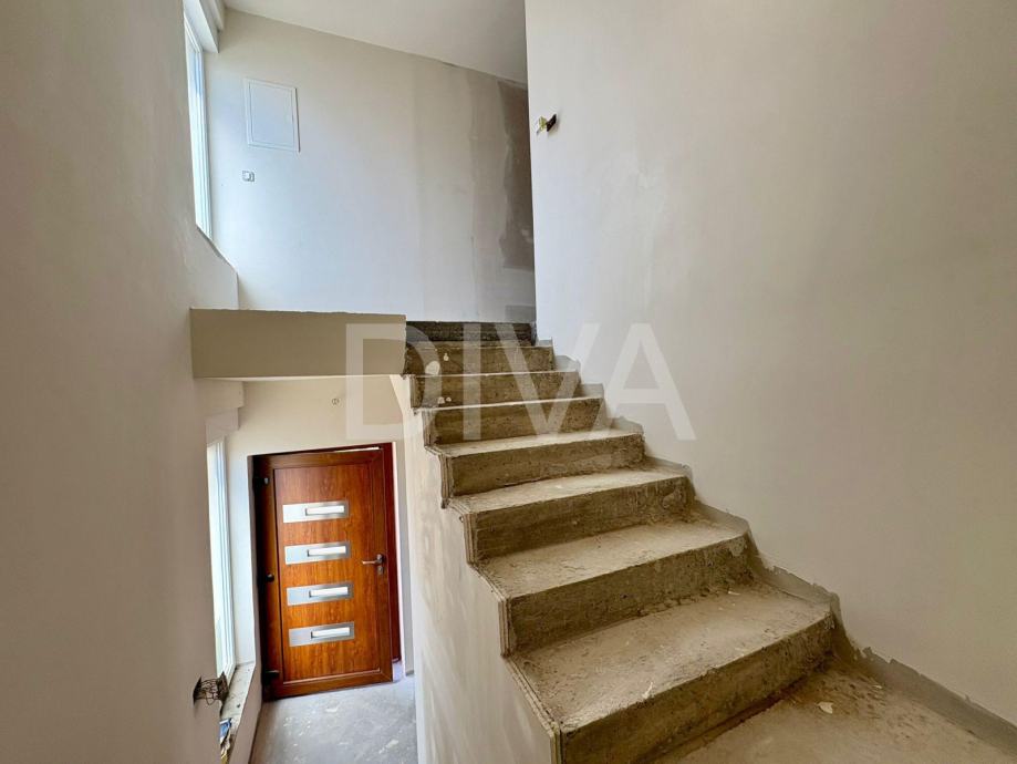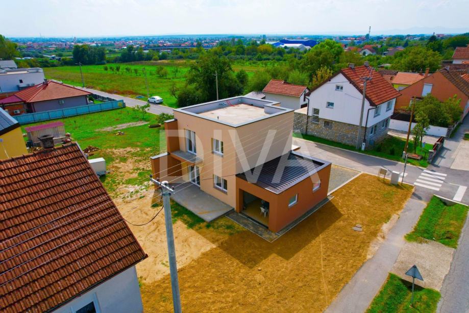 Na prodaju je nova katnica s garažom, ukupne bruto površine 117,36 m2, odnosno neto korisne površine (s koeficijentima) 107,70 m2. Kuća je smještena u mirnom i traženom dijelu Brodskog Vinogorja, u Ulici Marinci, na parceli površine 401 m2, od čega je cca 241 m2 uređene zelene površine.