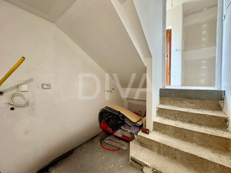 Kuća je poluugrađena, smještena na uglovnoj parceli.