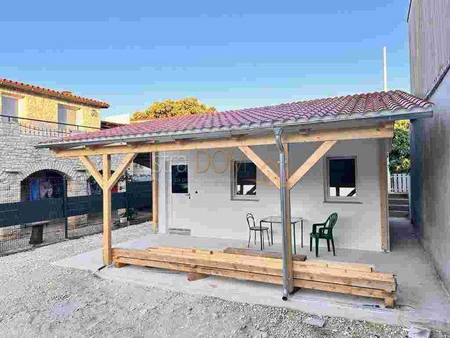 Kuća je smještena na okućnici od 226 m². U stražnjem dijelu kuće nalazi se velika natkrivena terasa s roštiljem i vanjskim tušem, idealna za ljetne zabave i opuštanje na otvorenom. U prednjem dijelu nalazi se prostor u obliku istarskog kažuna sa zasebnim ulazom, koji se može koristiti kao spremište ili dodatna soba. Također, ispred kuće su osigurana parkirna mjesta.
