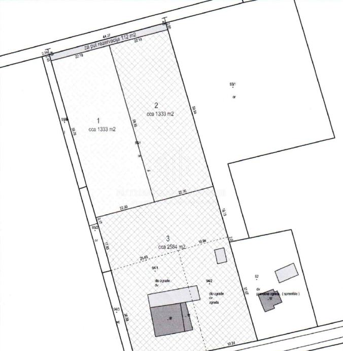 NAPOMENA: Mogućnost parcelacije na dvije parcele po 1333 m2.