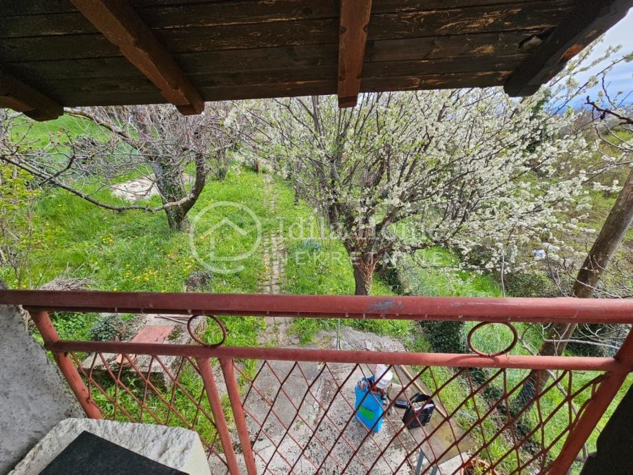Gornja etaža ima izlaz na balkon, a donja etaža ima terasu