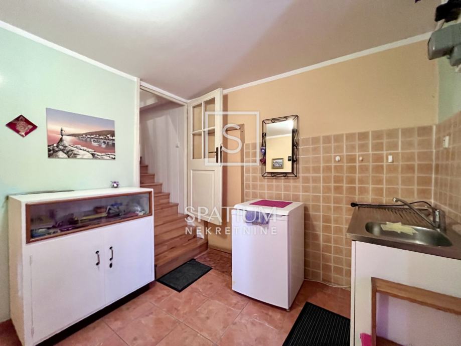 KLANA, u ponudu smo dobili kuću u nizu na mirnoj lokaciji. Smještena nedaleko samog centra Klane, vezana s dvije kuće, ova primorska kamena kuća sastoji se od dvije etaže, prizemlja i kata. U prizemlju se nalaze kuhinja, blagovaonica, dnevni boravak, kupaonica te konoba. Unutarnje stepenište vodi na kat gdje se nalaze dvije spavaće sobe. Kuća ima visoko potkrovlje, gdje je moguće izvesti još dvije spavaće sobe. Za istaknuti je kako su sve instalacije struje i vode izmijenjene, postavljena je nova PVC stolarija, nove pločice i podovi te novi krov i nova fasada s izolacijom. Kuća u vlasništvu ima dva parkirna mjesta i terasu od 20 m2. Grijanje je uređeno putem peći na drva. Nekretnina pogodna kako za život, tako i za opciju kuće za odmor.