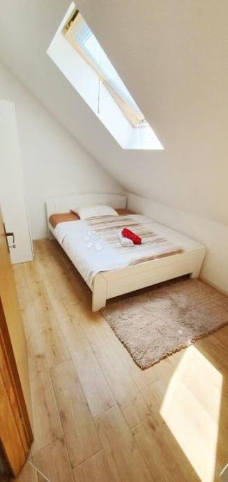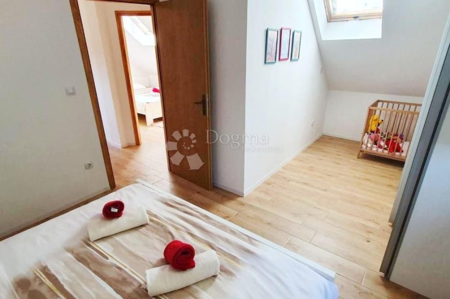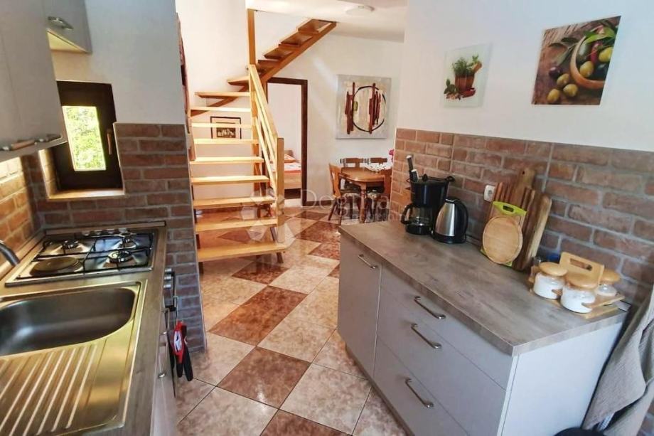 Kuća je potpuno spremna za useljenje i pruža sve što vam treba za udoban boravak tijekom cijele godine. U prizemlju se nalaze prostrani dnevni boravak, kuhinja s ostavom, dvije spavaće sobe i kupaonica. Unutarnje stubište vodi u visoko potkrovlje s dodatne dvije spavaće sobe, još jednom kupaonicom te otvorenom galerijom koja pruža dodatni prostor i šarm.
