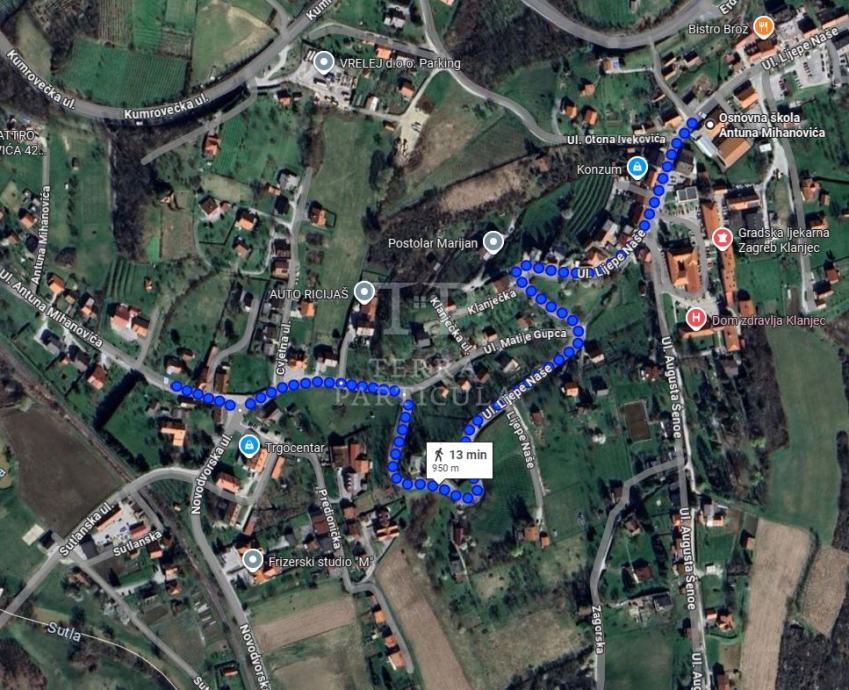 Prodajemo kuću površine cca 120 m² stambenog prostora s 120 m² suterena koji se koristi kao spremište te gospodarsku zgradu od cca 60 m², sve na okućnici od 1.838 m². Stambeni dio sastoji se od tri spavaće sobe, ostave, kuhinje s blagovaonom, dnevnog boravka i hodnika. Sve odmah useljivo/funkcionalno. Od priključaka tu su struja, voda i kanalizacija (plin je u blizini, uz ogradu). Novi crijep i letve na krov stavljene su 2005. Za nju je izdano Rješenje o izvedenom stanju (uporabna dozvola) i sukladno tome moguće ju je kupiti stambenim kreditom. Nalazi se na adresi Ulica Antuna Mihanovića 14, Klanjec.