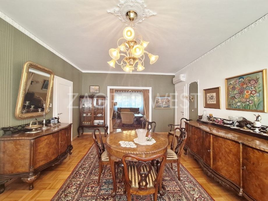 Komforan, klasičan stan koji se sastoji od dnevnog boravka, kuhinje s blagovaonicom i izlazom na loggiu, izbe, djevojačke sobe, 2 salona, spavaće sobe, kupaonice s wc-om i dodatnog wc-a.