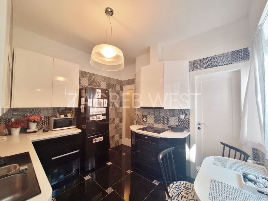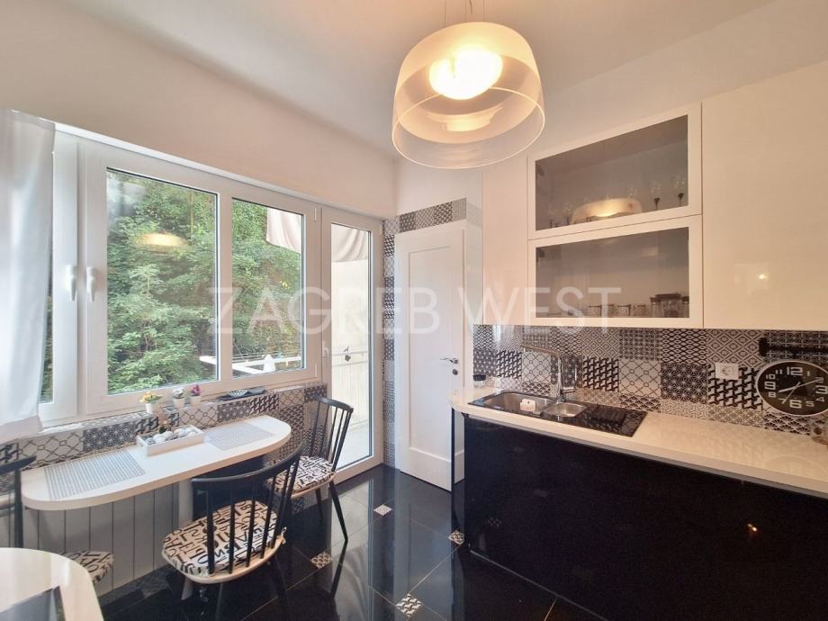 Zbog odlične zapadne orijentacije i otvorenog pogleda na park ima puno dnevnog svjetla. U dnevnoj sobi ima ugrađenu električnu rolo tendu za zaštitu od sunca.