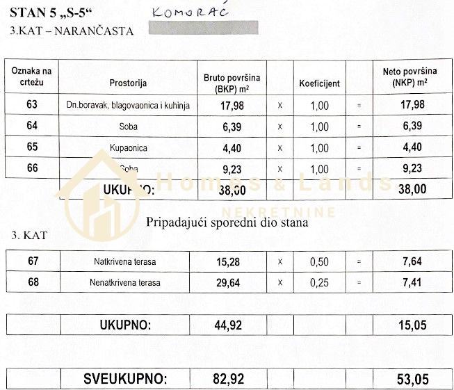 Apartman (S5) – 82,92 m² bruto / 53,05 m² neto