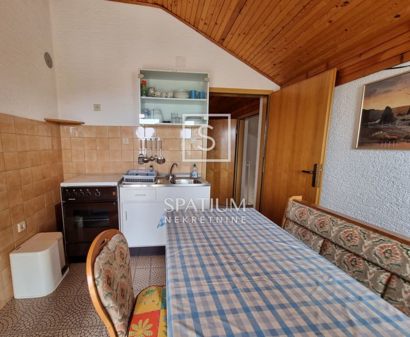 KLENOVICA, u ponudi imamo lijepi stan u obiteljskoj kući blizu mora, okružena prirodom. Nalazi se u potkrovlju, ukupne je površine 84 m2, a sastoji se od ulaznog dijela, prostranog dnevnog boravka sa spavaćim odjeljenjem, zatim odvojene spavaće sobe, kuhinje s blagovaonicom iz koje se izlazi na balkon s pogledom na more, kupaonice i toaleta te jedne dodatne prostorije koja trenutno služi kao ostava. S obzirom na prostranost stana moguće je dobiti još jednu spavaću sobu uz malu adaptaciju. Namješten je te opremljen PVC stolarijom i klima uređajima, a postoji mogućnost dodatne udobnosti grijanja na drva.