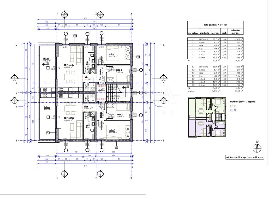 Posebna pažnja posvećena je funkcionalnosti prostora – tlocrti su promišljeni kako bi svaki kvadrat bio maksimalno iskorišten, a stanovi pružaju osjećaj prozračnosti i komfora.