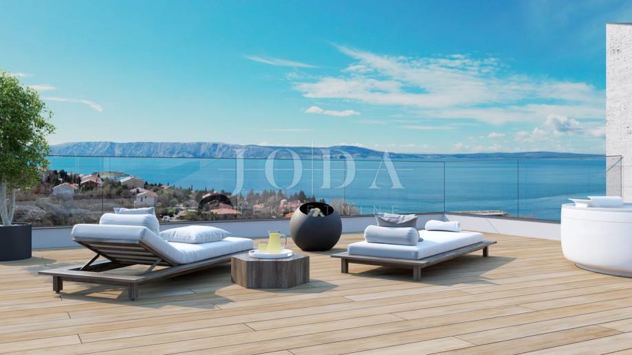 Sastoji se od tri spavaće sobe,dvije kupaonice,otvorenog koncepta dnevnog boravka i kuhinje te lijepe terase sa pogledom na more.
