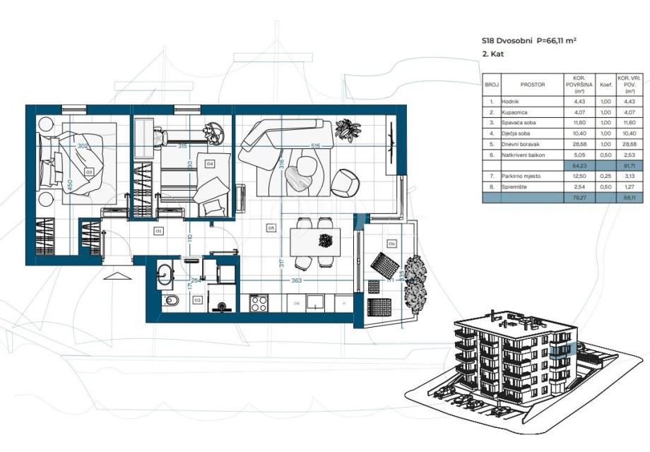 Stan S18 površine 65,48 m² nudi dodatni komfor i veću kvadraturu.