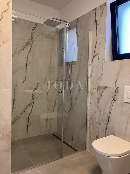 Prodajemo novogradnju u prvom redu do mora, udaljena svega deset metara od obale, pruža nezaboravan pogled na more i savršeno okruženje za opuštanje. Stan obuhvaća dvije udobne spavaće sobe, dvije moderno uređene kupaonice, prostran dnevni boravak skladno povezan s blagovaonicom i kuhinjom te sunčanu terasu idealnu za uživanje u pogledu i morskom zraku. Podno grijanje i cjelovita klimatizacija osiguravaju ugodnu temperaturu tijekom cijele godine, dok privatno parkirno mjesto u vlasništvu dodatno povećava komfor i praktičnost. Riječ je o nekretnini koja spaja moderan dizajn i vrhunsku lokaciju, stvorenoj za bezbrižan odmor i istinski užitak uz more.