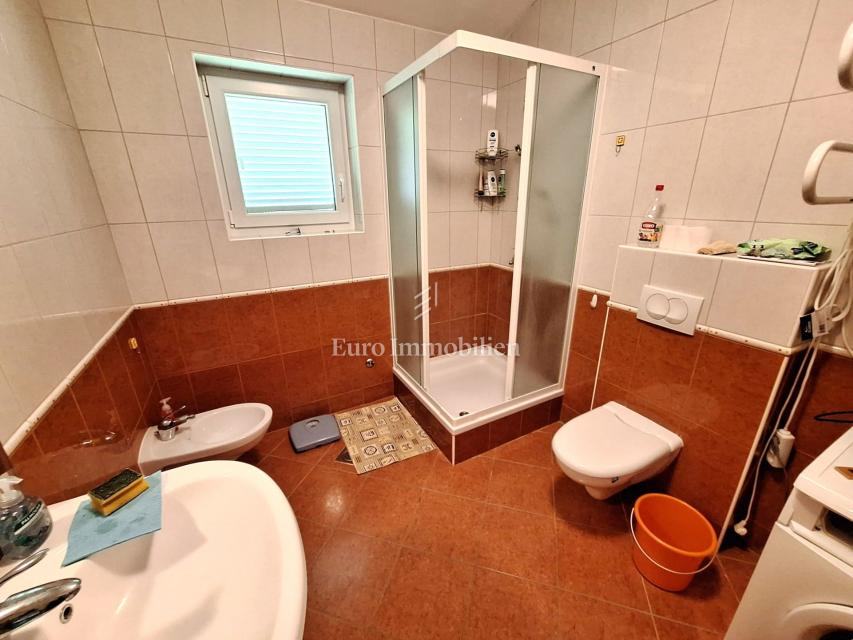 Prodaje se apartman na drugom katu apartmanske zgrade na odličnoj lokaciji blizu mora. Apartman ima 71,58 m2 i sastoji se od dvije spavaće sobe, dnevnog boravka s kuhinjom i blagovaonom, kupaone, spremišta, hodnika i prostrane terase. Klimatiziran.