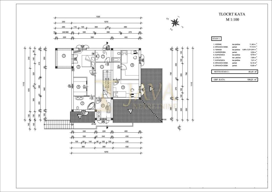 * Katnost: Prizemlje + Prvi + Drugi kat + Potkrovlje
