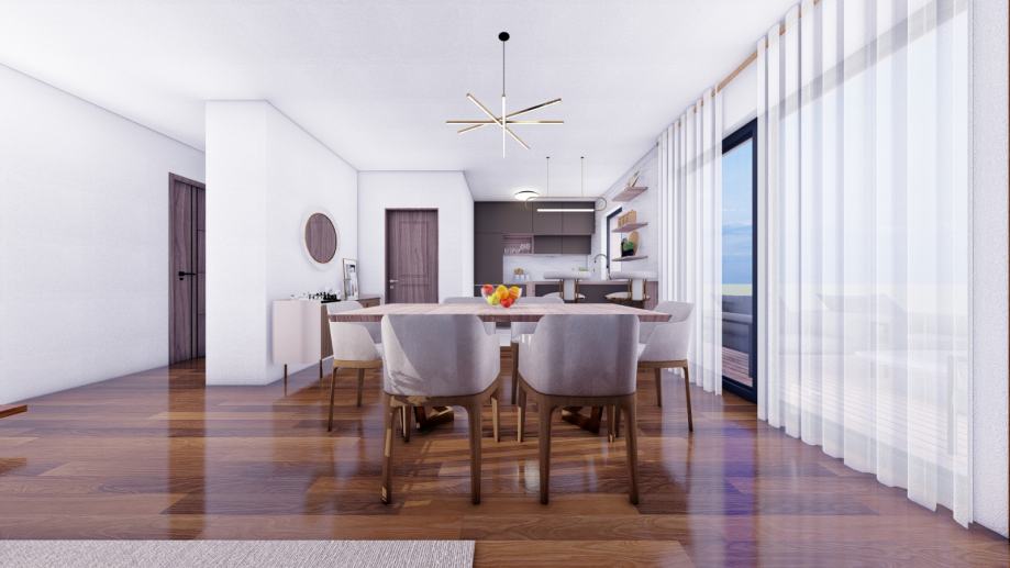 - dnevni boravak, blagovaonica i kuhinja (35,40 m2)