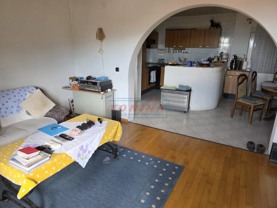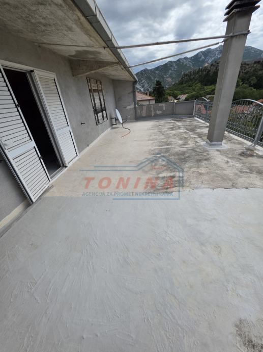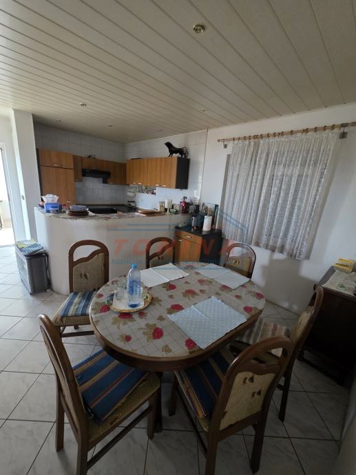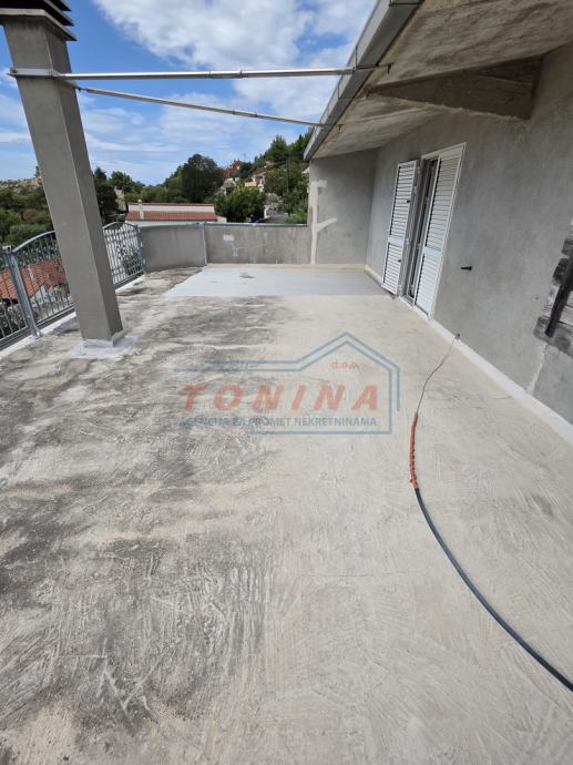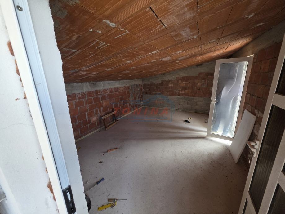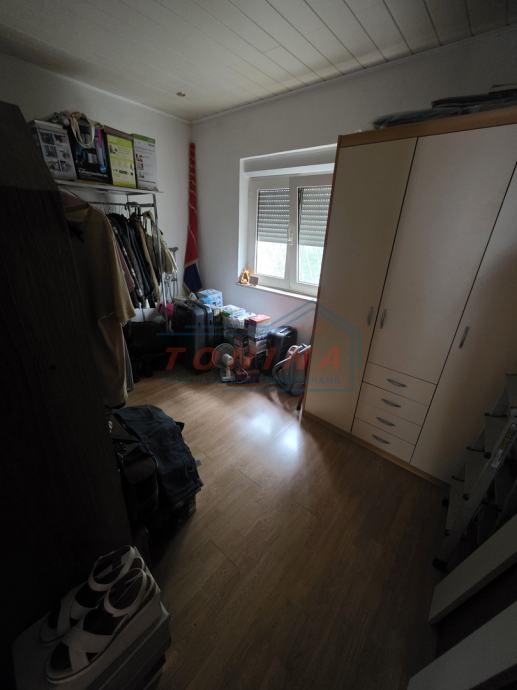 Prodajemo samostojeću kuću na tri etaže tlocrtne površine 130 m2, koja se sastoji od konfornog dvosobnog stana na prvom katu s balkonom, radione i garaže u prizemlju te nedovršenog potkrovlja s velikom terasom s otvorenim panoramskim pogledom. Kuća se nalazi na parceli od 400 m2, ima uredno vlasništvo i uporabnu dozvolu.