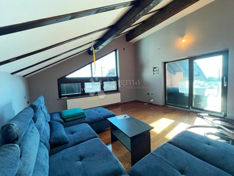 Na katu se smjestio drugi prostrani dnevni boravak s jednom stranom potpuno ostakljenom, što prostoru daje obilje prirodnog svjetla i otvoren pogled. Uz njega se nalaze tri sobe, moderna kupaonica, balkon te priprema za jacuzzi – detalj koji ovoj nekretnini daje dodatnu dozu luksuza.