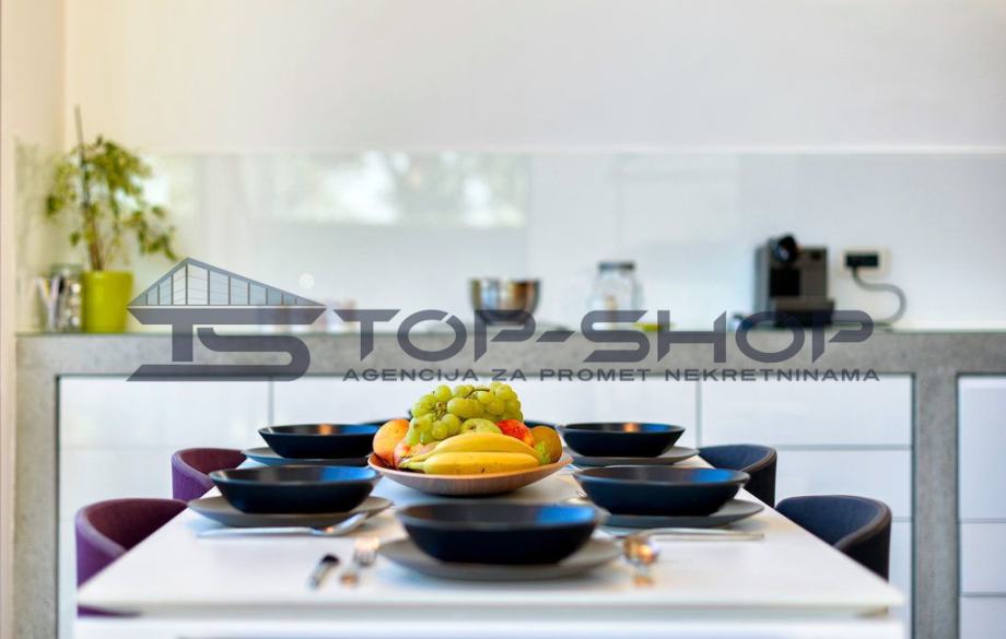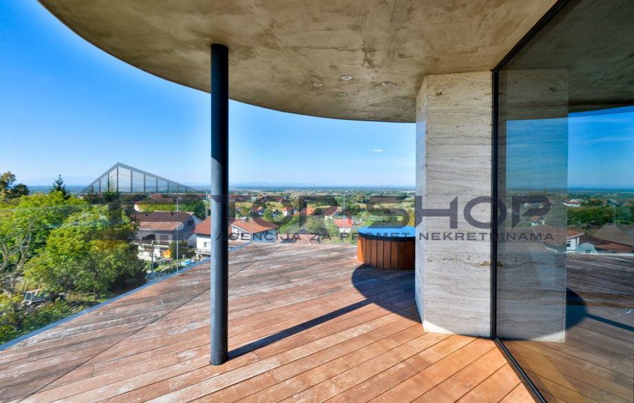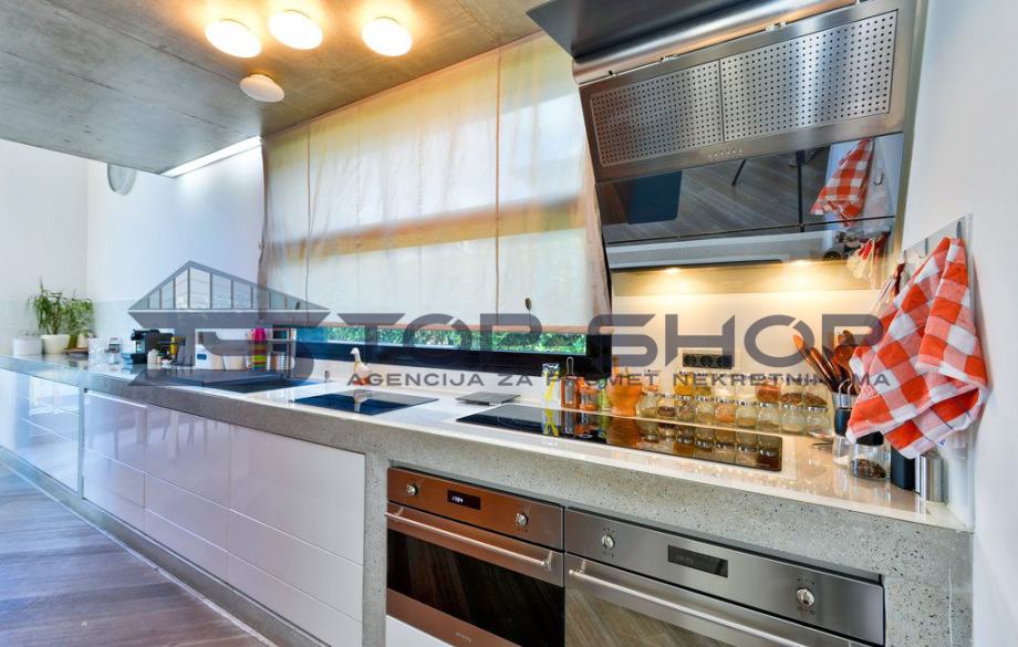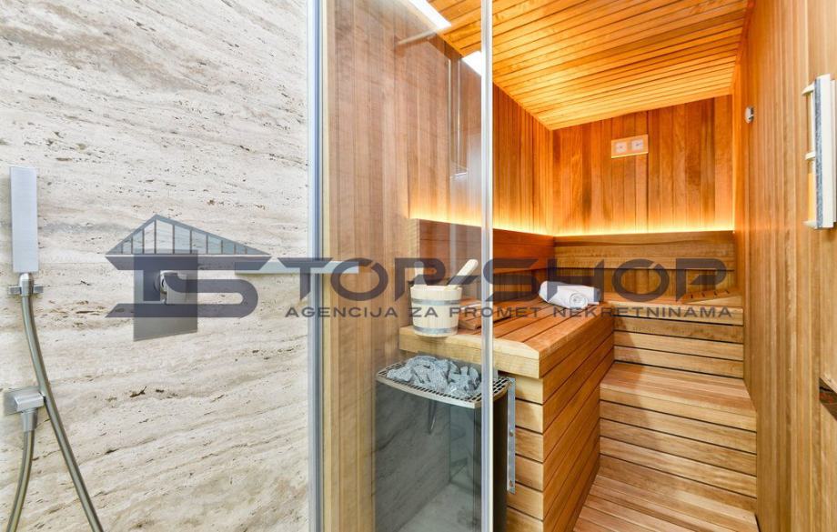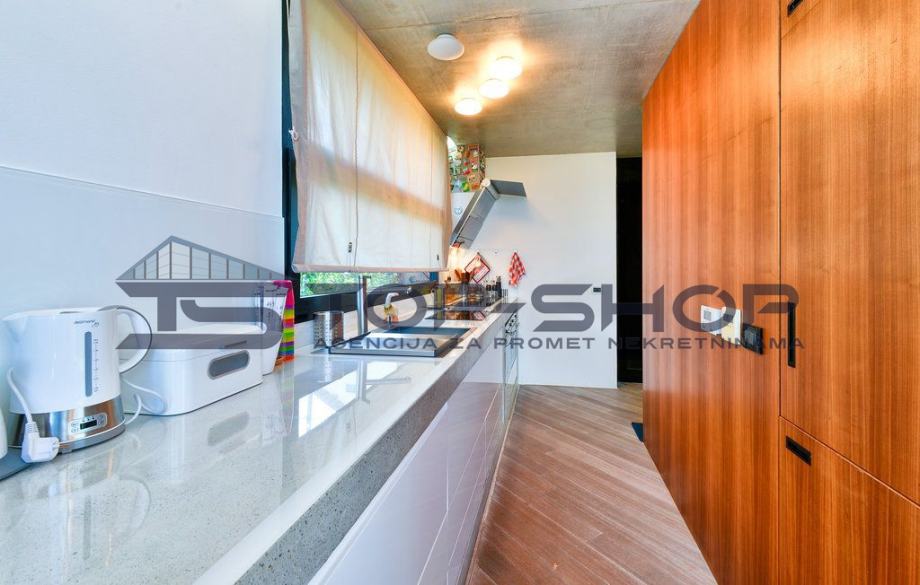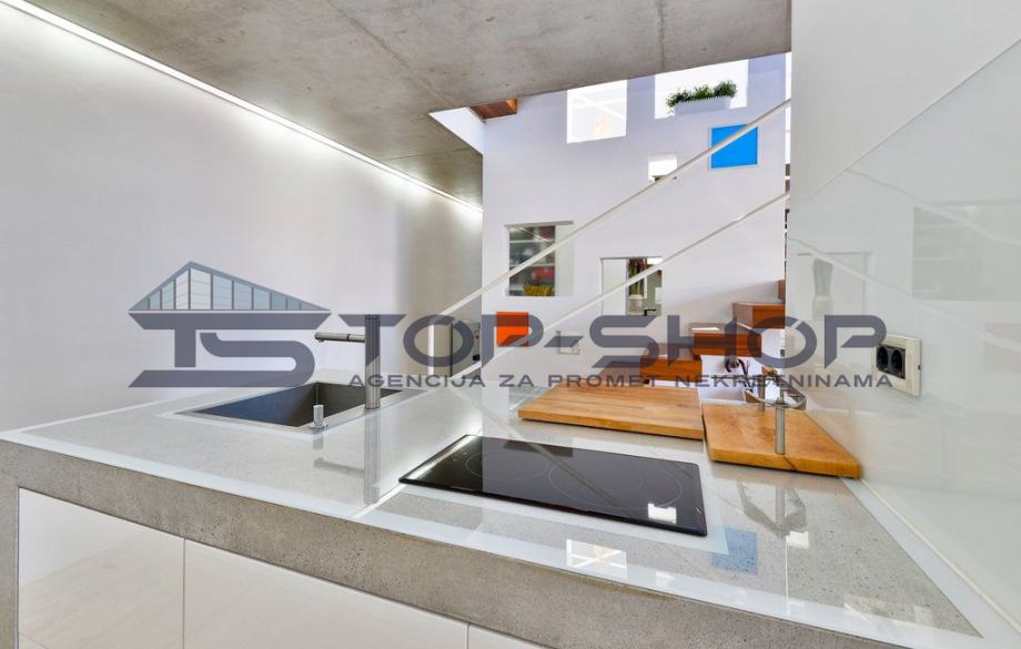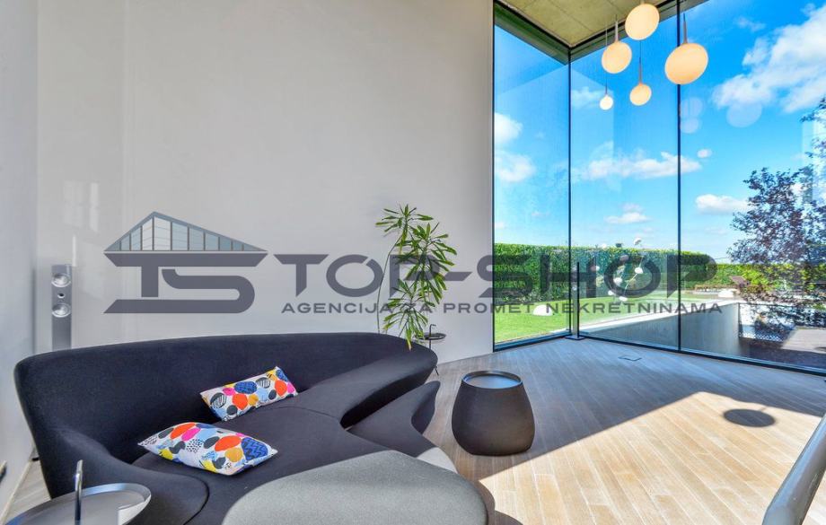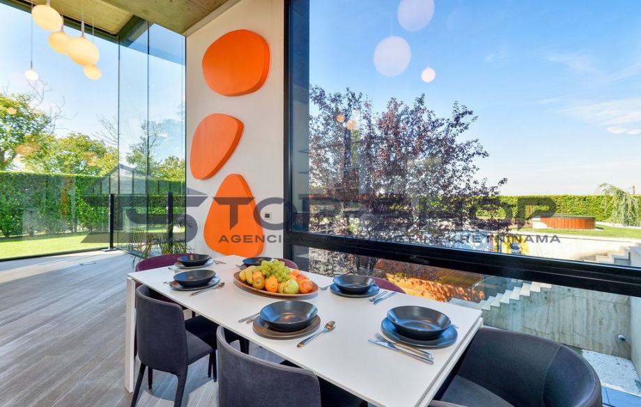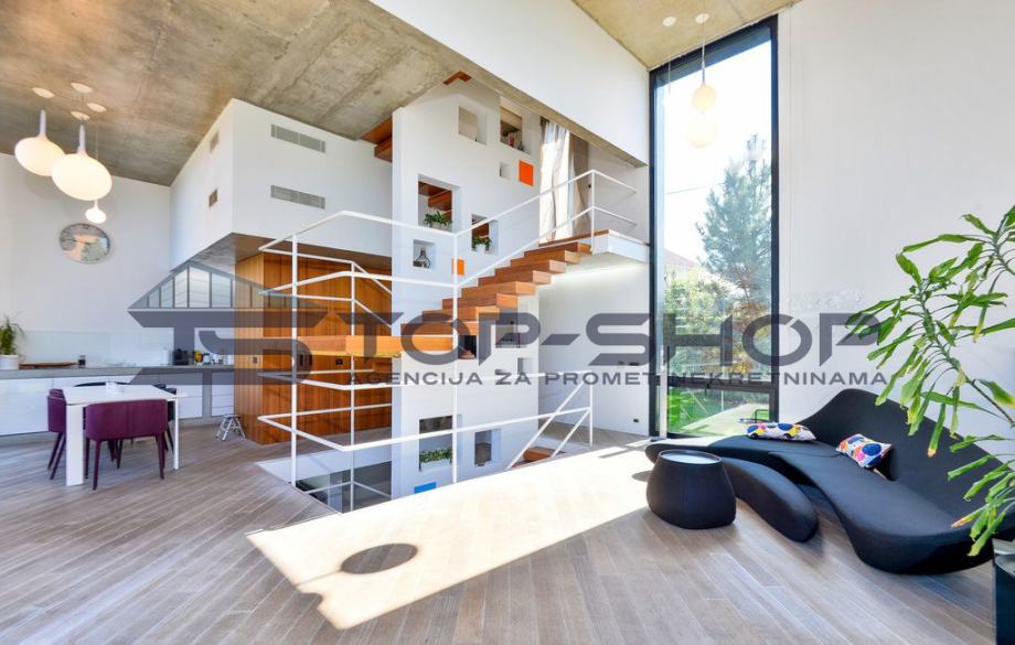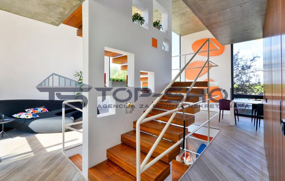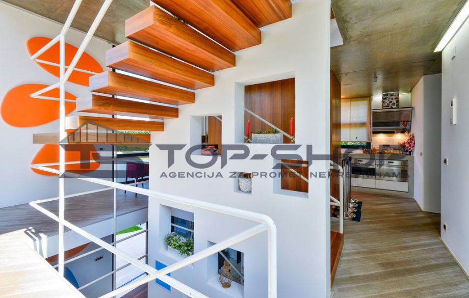 Dizajnerska kuća s privlačnom arhitekturom za moderan i udoban način života. Kuća se prostire na 3 etaže. Na prvoj etaži nalazi se prekrasna kuhinja s blagovaonicom, radna soba, kupaonica s toaletom i sauna. Na drugoj etaži također se nalazi kuhinja s blagovaonicom, prostrani dnevni boravak, spavaća soba, kupaonica s hidromasažnom kadom i gostinjski toalet, dok su na trećoj etaži dvije spavaće sobe i kupaonica s toaletom.