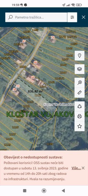Prodajem drvenu klijet sa okućnicom, betonskim stupovima i žicom predviđenim za eventualni vinograd ili voćnjak. Pogled na Kalnik, Ivančicu i Medvednicu. Blizina jezera za ribolov Dvorovi. Mogućnost priključka struje. 8 km od Križevaca. 1km od izlaza brze ceste Zagreb-Kloštar Vojakovački.