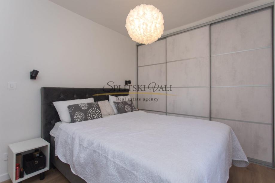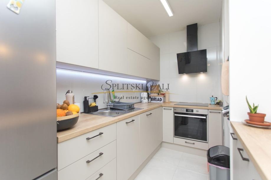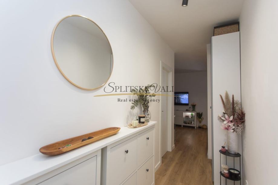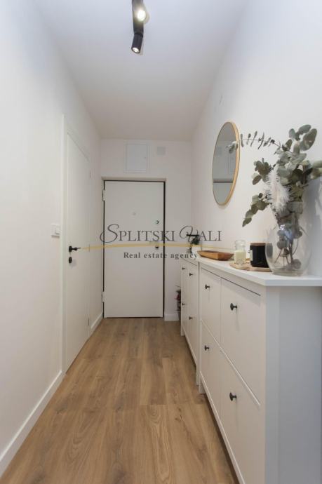 Stan se prostire na 55m2 i sastoji se od hodnika, kuhinje s blagovaonicom, dnevnog boravka, kupaonice, dvije spavaće sobe i balkona.
