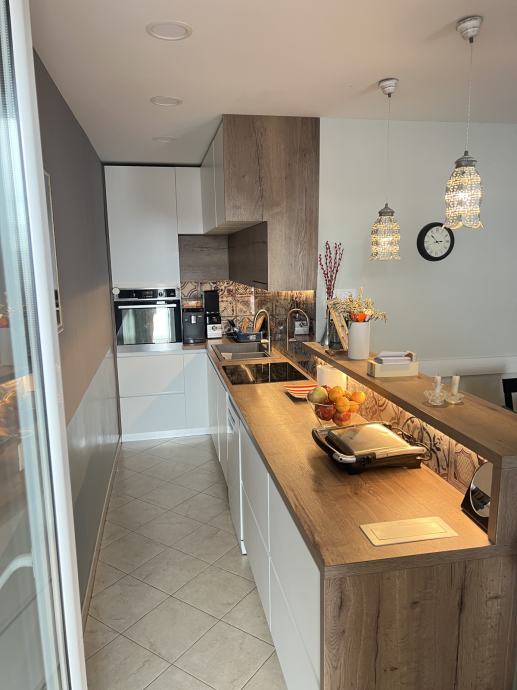 Stan se nalazi u mirnom dijelu Kmana, idealan za obitelj s djecom. U blizini se nalaze dva dječja parka, škola, vrtić i igrališe.