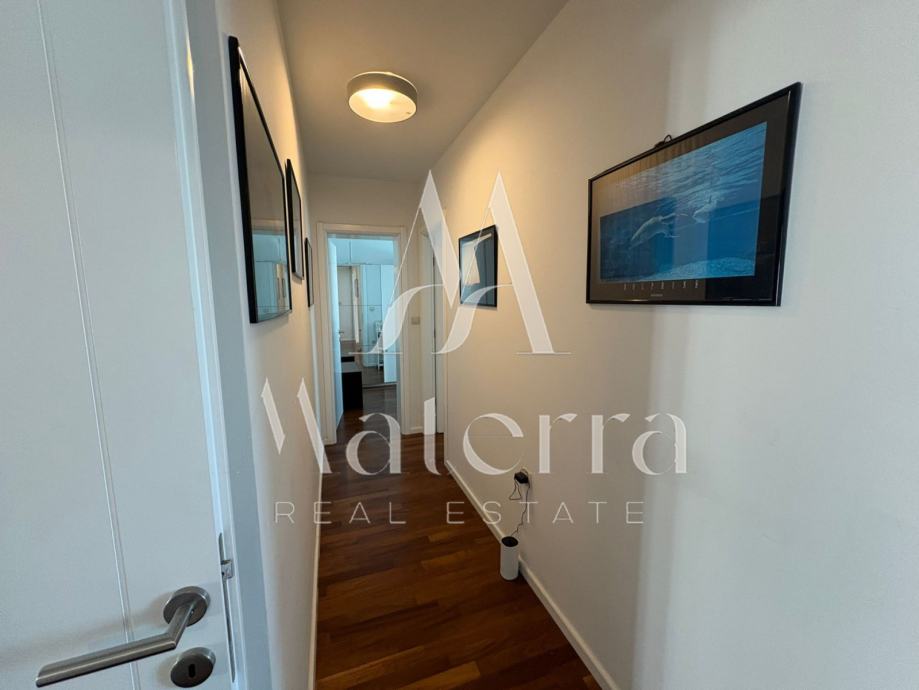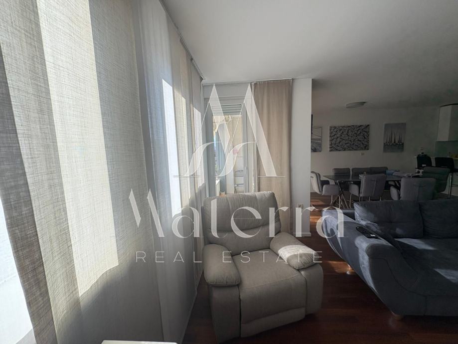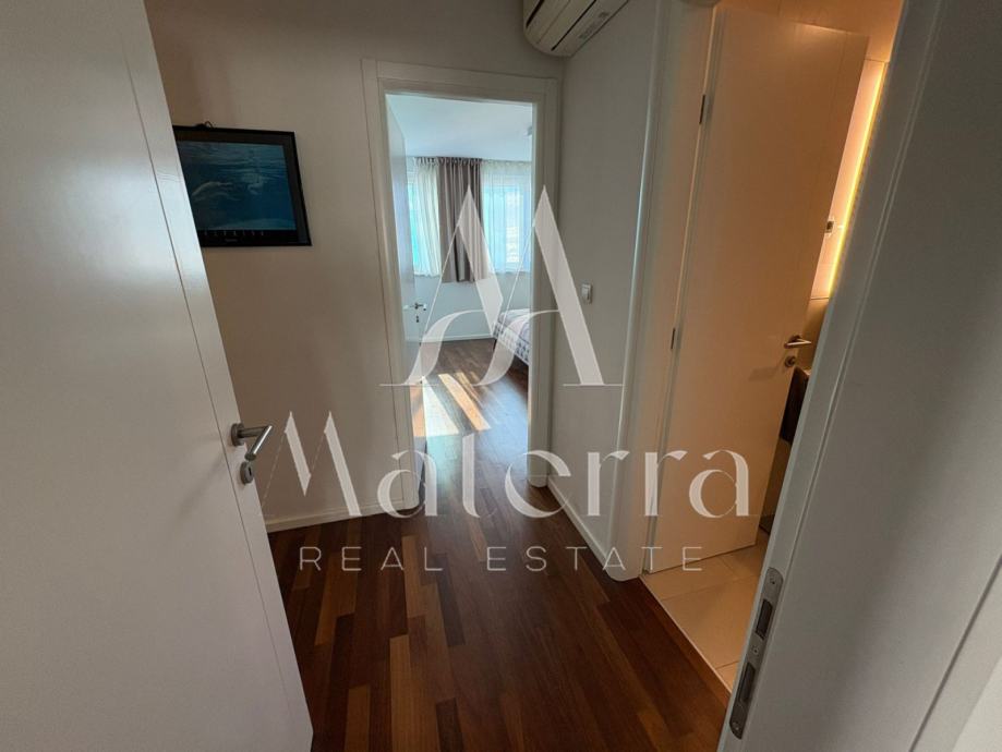 Stan je potpuno renoviran 2024. godine i opremljen premium namještajem, spreman za useljenje bez dodatnih ulaganja. Cijeli prostor odiše luksuzom i svjetlom, a južni zid dnevnog boravka i blagovaonice ispunjen je staklenim površinama koje pružaju prekrasan pogled na more i obilje prirodnog svjetla tijekom cijelog dana.