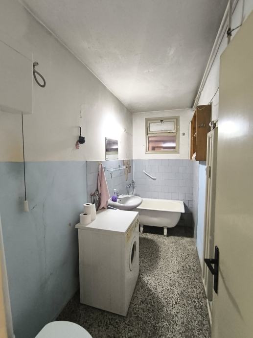 Prodaje se stan odličnog tlocrta na 9., ujedno i zadnjem, katu zgrade sa liftom. Stan se sastoji od hodnika, spavaće sobe, kuhinje sa ostavom, kupaonice i dnevnog boravka. Izmještanjem kuhinje u dnevni boravak ( otvoreni prostor kuhinja/blagovaonica/boravak) se može dobiti druga spavaća soba. Stan je izuzetno svijetao i ugodan. U blizini je javni prijevoz, trgovina, kafić, park, škola, vrtić itd. Zgrada je dobro održavana, te nije pretrpjela nikakvu štetu od potresa. Stan je za uređenje, a vlasništvo je uredno.