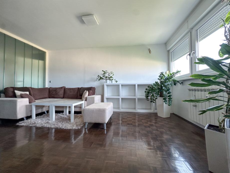 Iznajmljuje se ugodan trosoban stan na Knežiji. Iznajmljuje se vrlo ugodan, topao i potpuno namješten trosoban stan 64,64 m2 na Knežiji, Ulica braće Domany. Smješten je na 9 katu stambene zgrade s liftom od ukupno 21 kat.