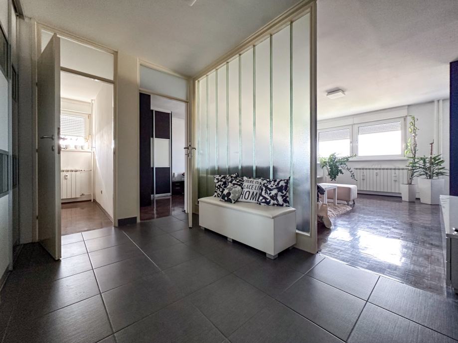 Iznajmljuje se ugodan trosoban stan na Knežiji. Iznajmljuje se vrlo ugodan, topao i potpuno namješten trosoban stan 64,64 m2 na Knežiji, Ulica braće Domany. Smješten je na 9 katu stambene zgrade s liftom od ukupno 21 kat.