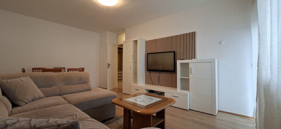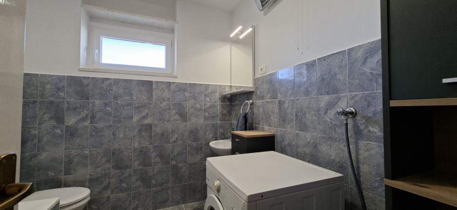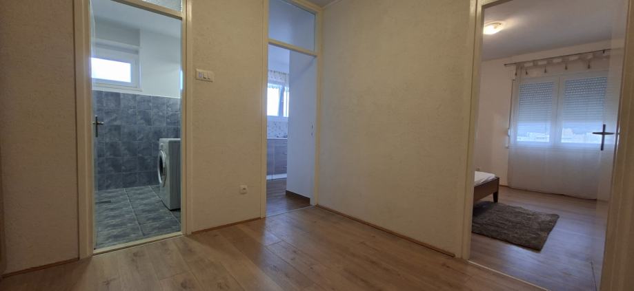 Potpuno je namješten i opremljen. Protuprovalna vrata, PVC novi prozori, novi podovi - laminat, perilica rublja, perilica posuđa, klima...