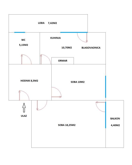 Stan se sastoji od slijedećih prostorija: