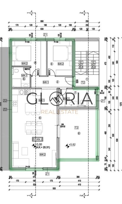 Stan S2 Z1-I proteže se na 93,17 m2 i sastoji se od: