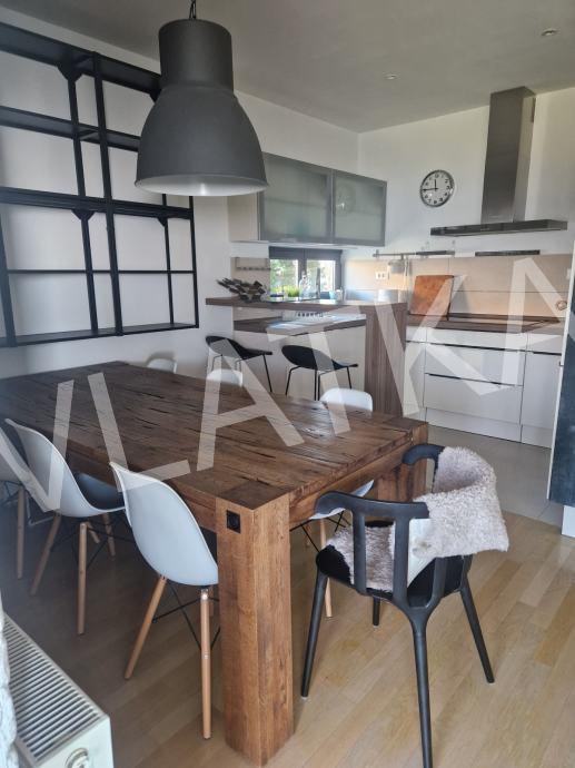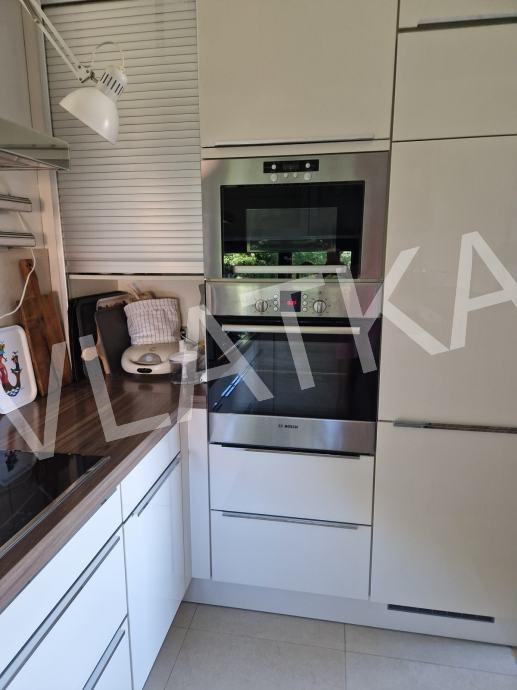 Stan je potpuno opremljen kvalitetnim namještajem i uređajima (Nolte kuhinja, Bosch, Miele), ima podno grijanje u renoviranoj kupaonici, pripremu za kamin, Vimar pametni sustav i električne rolete.